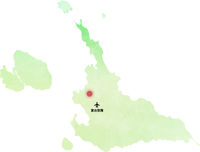 宮古空港から系統5番(新里宮國線)等にて「元うえのバス停」降車、徒歩3分 宮古空港から系統9番(みやこ下地島空港リゾート線)等にて「サンエー前」降車徒歩7分